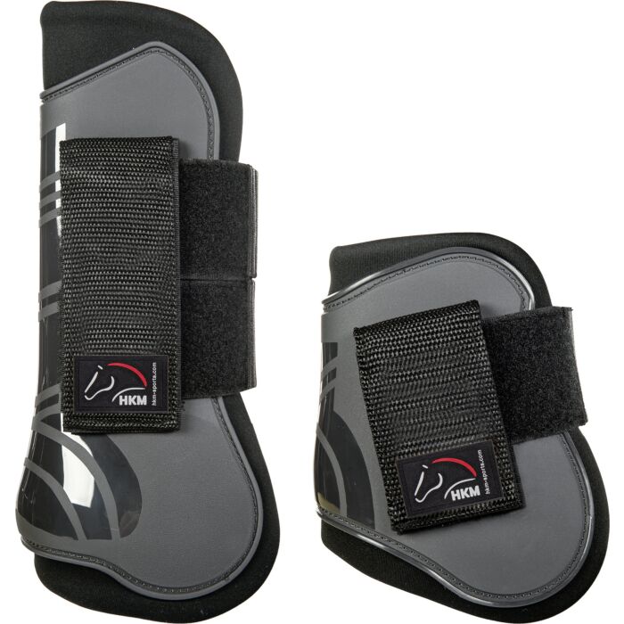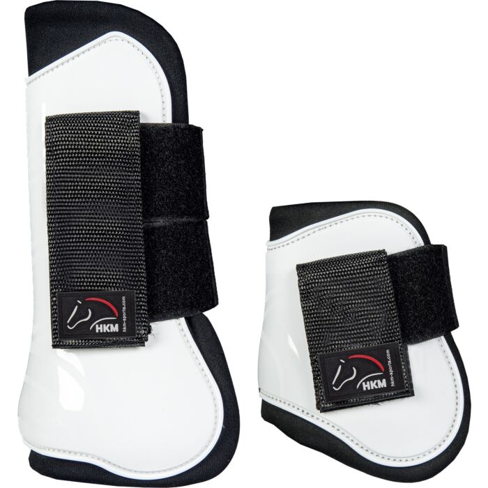 Strapazierfähiges 4er Set aus Springgamaschen und Streichkappen für Voll-, Warmblut und Pony. Die Gamaschen und Streichkappen sind stoßabsorbierend, eng anliegend und formstabil, sie schützen das Bein des Pferdes optimal. Die vorgeformte Kunststoffschale ist anatomisch angepasst und von innen weich gefüttert. Die Klettverschlüsse sind ca. 5 cm breit und lassen sich stufenlos und variabel verstellen. Das 4er-Set ist in vielen Farben und Größen erhältlich.