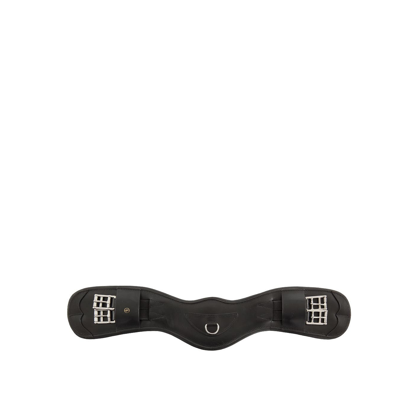 Vorgeformter Dressurgurt aus Leder. Die anatomische Form des Gurtes gibt dem Pferd maximale Bewegungsfreiheit. Die Elastikenden bieten zusätzlichen Komfort und erleichtern das Nachgurten. Der D-Ring ist praktisch, wenn Hilfszügel mit Karabiner verwendet werden. Der Gurt ist mit Edelstahl-Rollschnallen auf beiden Seiten ausgestattet. Die Innenseite des Gurtes ist zur Verbesserung des Tragekomforts mit Gel versehen.