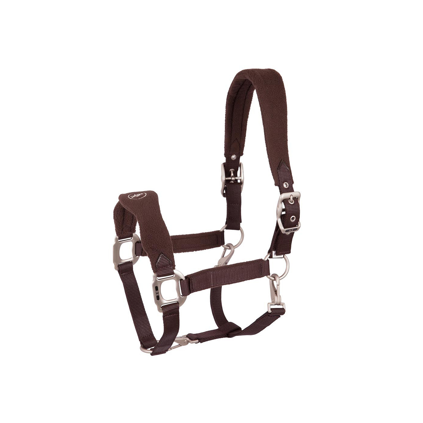 Halfter aus Nylon mit Fleece unterlegt. Das Halfter ist am Kopfstück beidseitig zu öffnen und das Unterteil kann komplett abgenommen werden. Erleichtert so das Reinigen des Kopfes. Mit BR Stickerei und mattsilbernen Beschlägen.