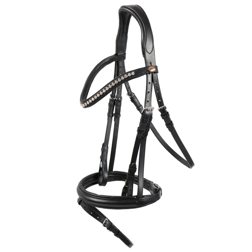 Die Trense Valluhn ist vielseitig einsetzbar. Das englische Reithalfter gibt es in den Farben Schwarz/Silber. Der Stirnriemen ist verziert mit Kristall-Strass-Steinen in Diamantfarben. Darüber hinaus überzeugt die Pferde Trense mit einem fairen Preis-Leistungs-Verhältnis.