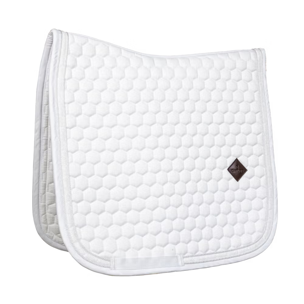 Gefertigt aus einem Baumwoll-Polyester-Mix mit Wabenstruktur, sorgt diese Schabracke für schnelles Trocknen und maximalen Komfort – selbst bei intensiven Trainingseinheiten. Die Innenpolsterung ist atmungsaktiv und bietet eine hervorragende Dämpfung zwischen Sattel und Pferderücken. Das eingestickte Kentucky-Logo aus hochwertigem veganem Leder steht für Premium-Qualität auf den ersten Blick.