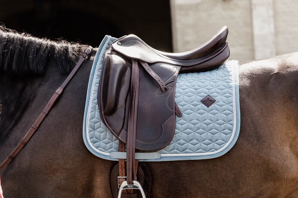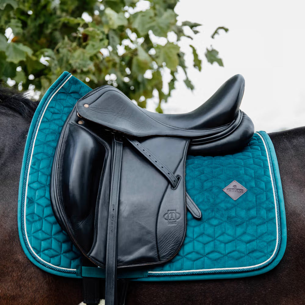 Super stylische und stilvolle Schabracke Velvet Dressage aus Samt mit doppelt gedrehter Bordüre.