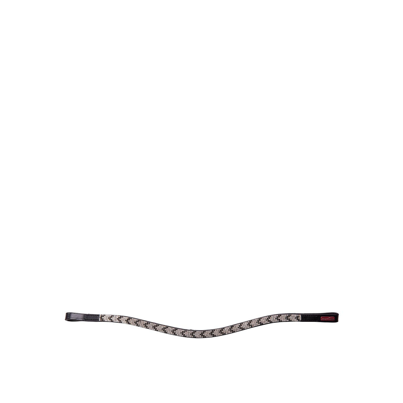 Leicht geschwungenes Stirnband mit 5-reihiger Strasskette im Pfeilmuster. Weich unterlegt.