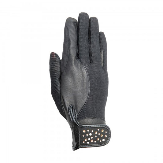 TOKIO Reithandschuhe aus Ziegenleder mit Mesh-Material und Kunststoffsteinen auf dem Verschluss