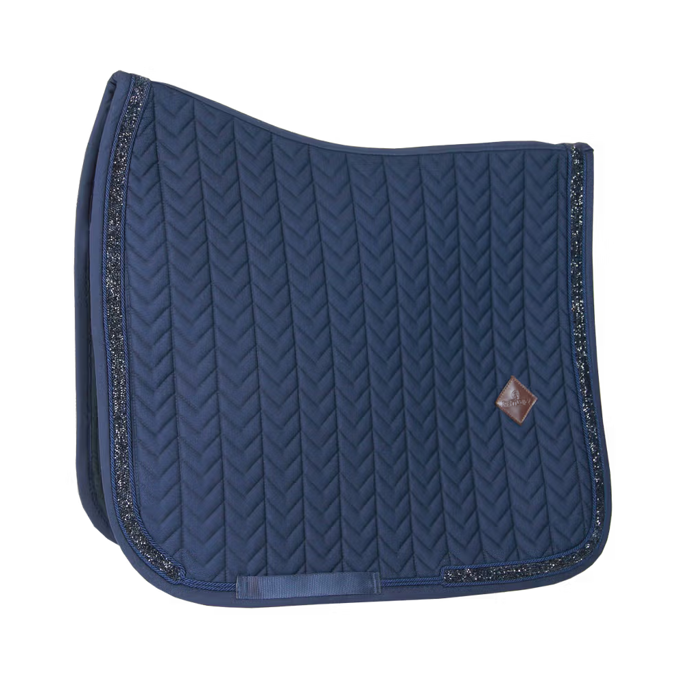 Unsere Schabracke Glitter Stone ist für das Dressur designed und bietet hervorragende Polsterung zwischen dem Rücken des Pferdes und dem Sattel und schützt gleichzeitig vor Verspannungen. Die Schabracke hat keine lästigen Schlaufen zur Befestigung am Sattel, sondern nur einen Nylonriemen für den Gurt.