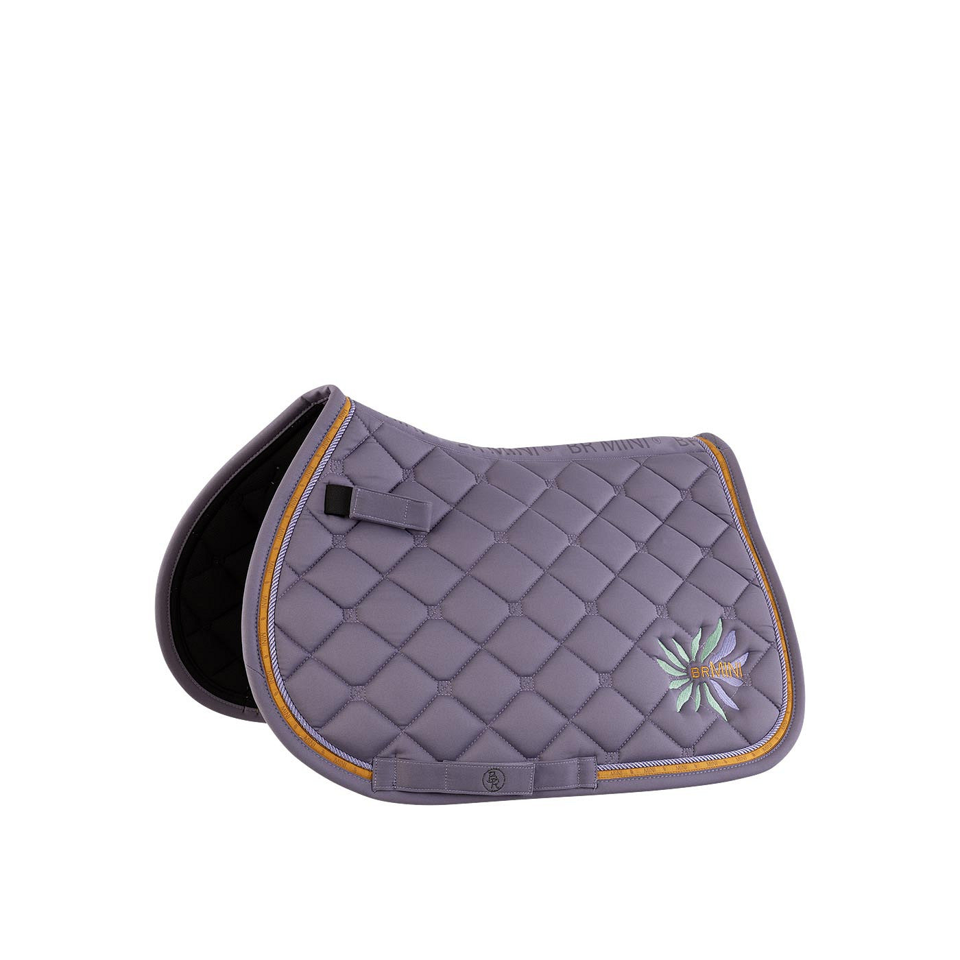 Diese anatomisch geformte Schabracke ist aus feinem Twill gefertigt und bietet dem Pferd großen Komfort. Das feuchtigkeitsregulierende Cool Plus Futter sorgt dafür, dass der Pferderücken so trocken wie möglich bleibt. Die Poly-Polsterung in Kombination mit Schaumstoff bietet eine gute Stoßdämpfung und ein angenehmes Tragegefühl. Die Schabracke ist mit Gurtstrupfenbefestigung und kurzer Sattelgurtbefestigung ausgestattet. Das Finish mit einer bunten Kontrastpasppelierung, einer Kordelbindung mit silbernem Glitzer und dem BR-Mini Artwork sorgt für einen verspielten Look.