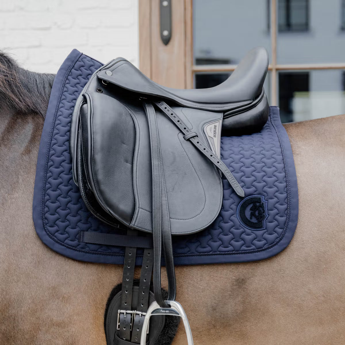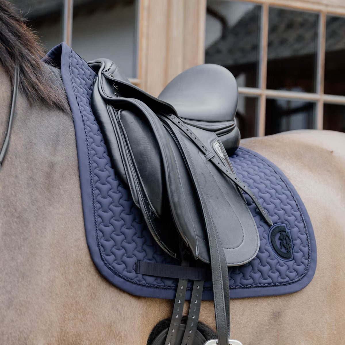 Die Schabracke hat eine einzigartige Steppung. Das Futter der Schabracke besteht aus einem Baumwoll- und Polyestergemisch, das Schweiß leicht absorbiert und sehr atmungsaktiv ist.