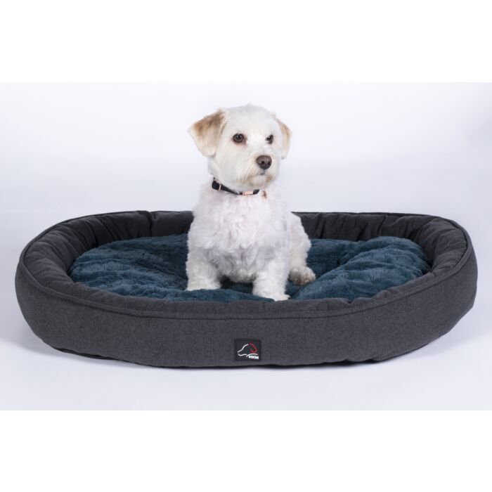 Das Hundebett Anam Cara oval besticht durch ein herausnehmbares Wende-Innenkissen, welches auch gewaschen werden kann. Eine Seite des Kissens ist in der Kontrastfarbe Petrol beziehungsweise Gelb gehalten und mit einem weichen Plüsch versehen. Die Unterseite des Bettes ist mit Anti-Rutsch Noppen ausgestattet.