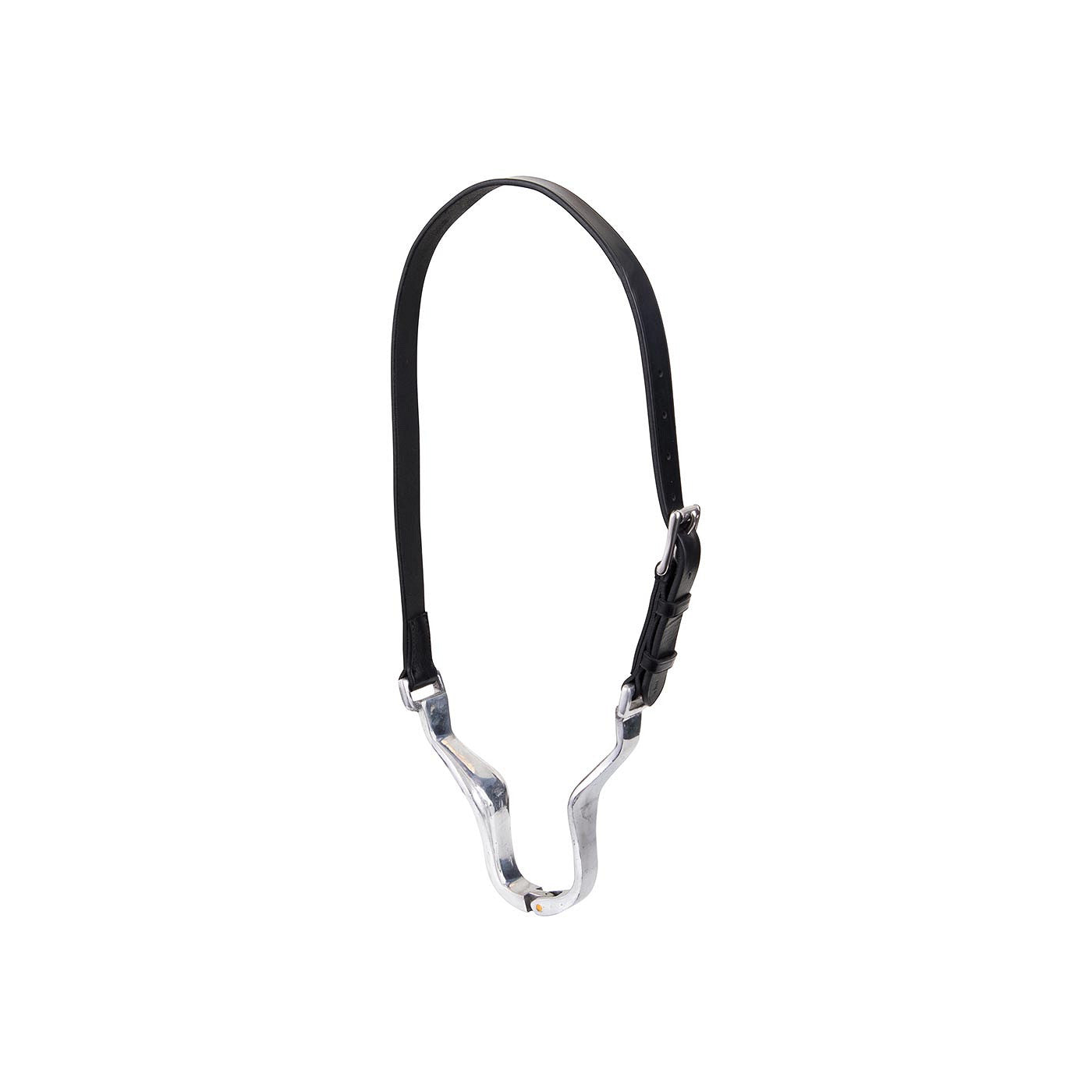 Ledergurt mit Aluminium Mittelstück welches genau in die Kehle platziert wird. Der Kopperriemen verhindert das das Pferd Luft schluckt.