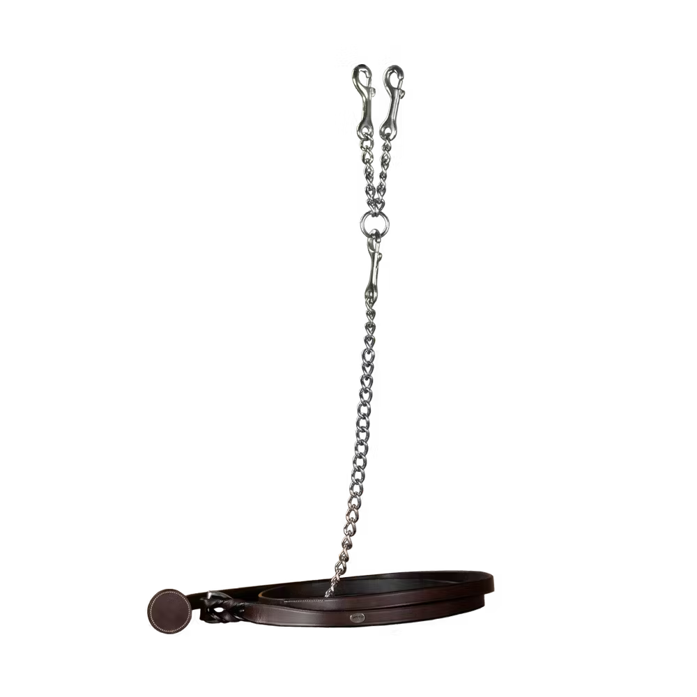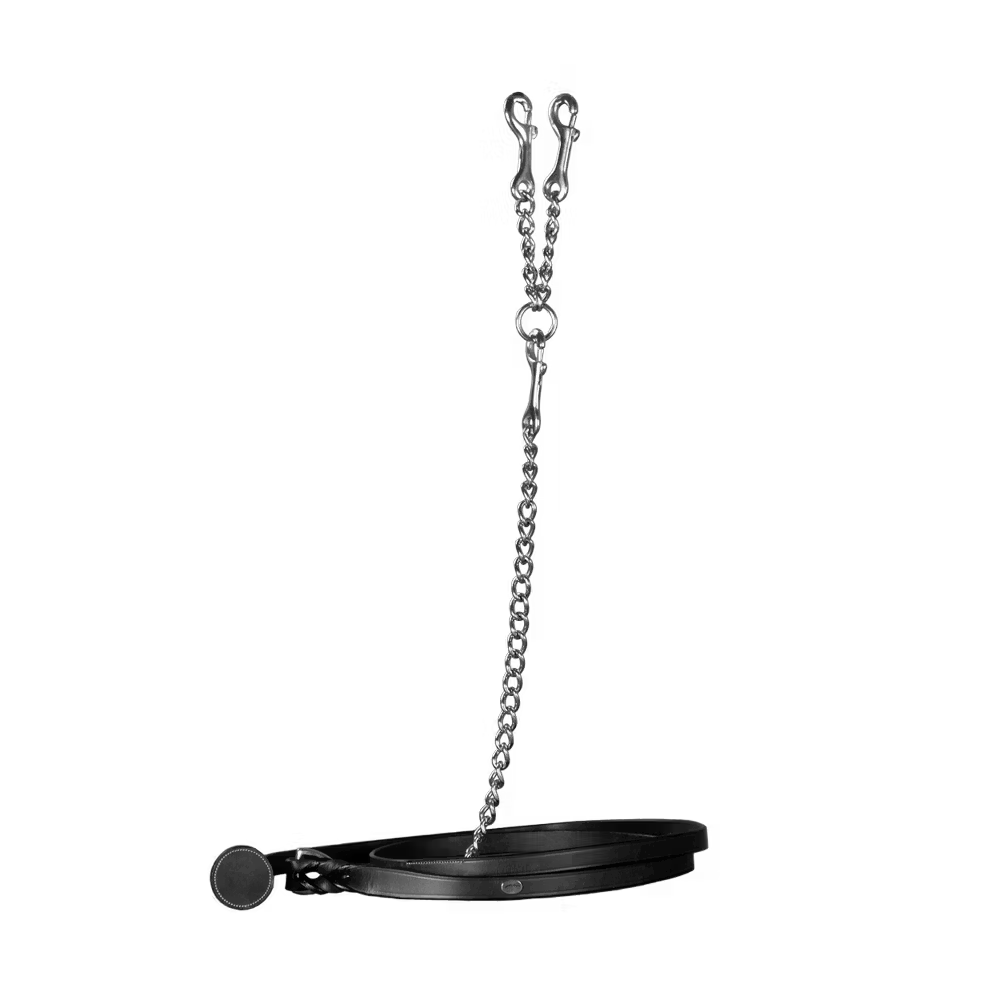 Leather Lead With Chain Leather lead – 2 m long, 20 mm wide 60 cm long single chain 20 cm long double chain