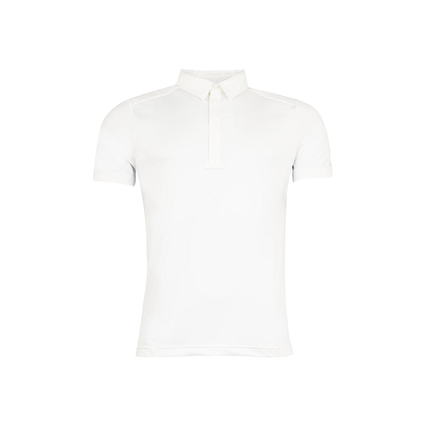 Dieses luftige, elastische Turniershirt ist sowohl für Männer als auch für Jungen geeignet. Unter den Achselhöhlen gibt es Mesh-Material für zusätzliche Belüftung. Das Shirt hat einen Polokragen und einen Knopfleise mit vier Knöpfen. Am unteren Rand der Knopfleiste befindet sich eine Schlaufe, die den Plastron während der Fahrt an Ort und Stelle hält.