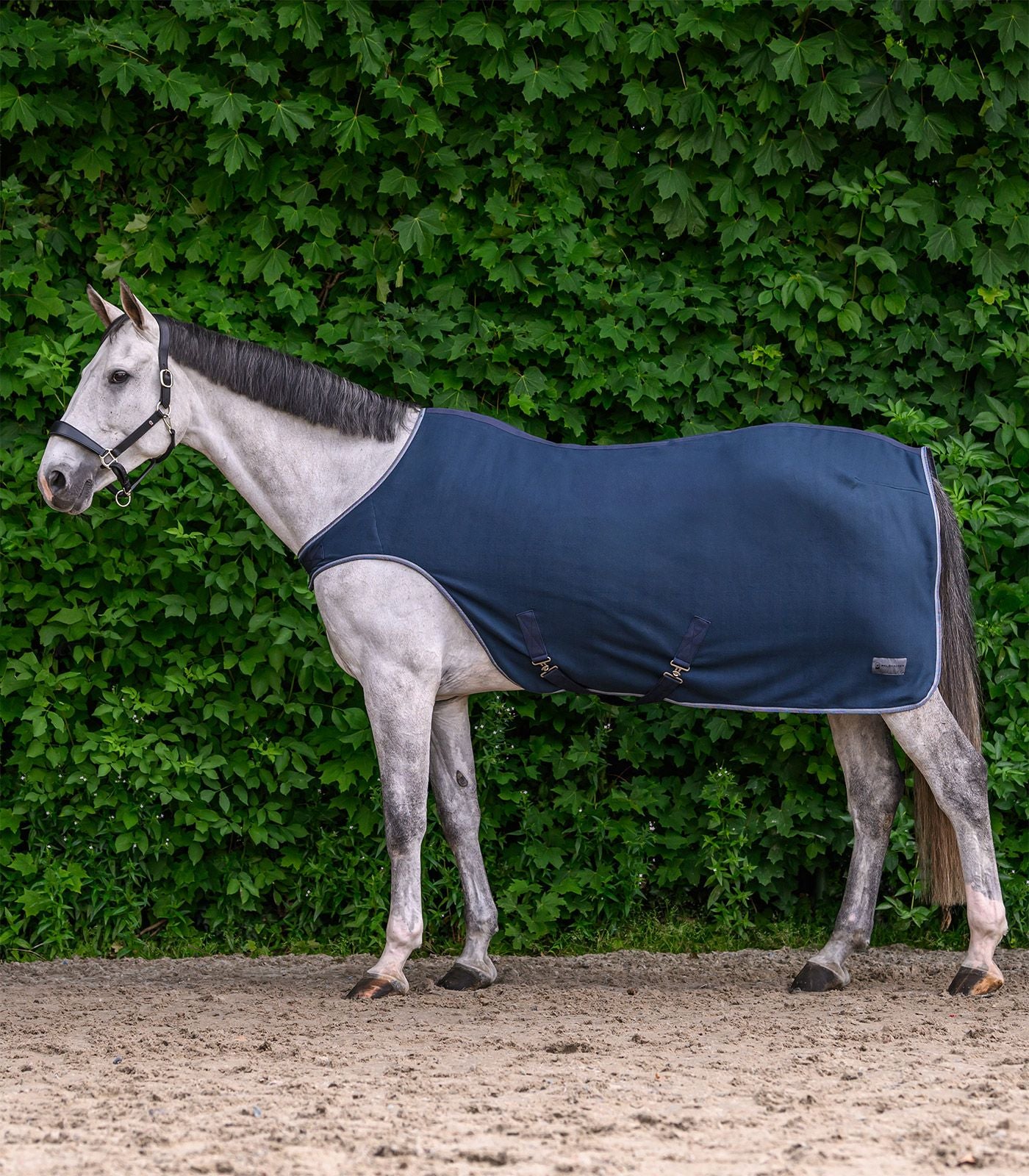 Die Economic Fleece-Führmaschinendecke unterstützt ein effektives Abschwitzen bei gleichzeitiger Bewegungsfreiheit in der Führmaschine. Sie ist mit Kreuzgurten, einem T-Frontverschluss und einer Schweifkordel für sicheren Halt ausgestattet.