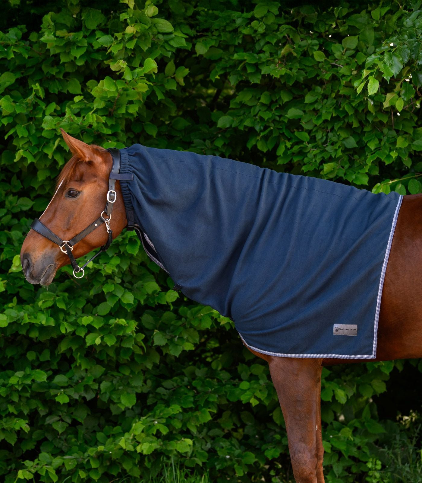 Ideal für kühle Tage und zum kontrollierten Abschwitzen: Das Fleece-Halsteil ist mit drei Klettverschlüssen und einem elastischen Einsatz am Hals ausgestattet und lässt sich passgenau anbringen. Es ergänzt die Fleecedecke Economic funktional.