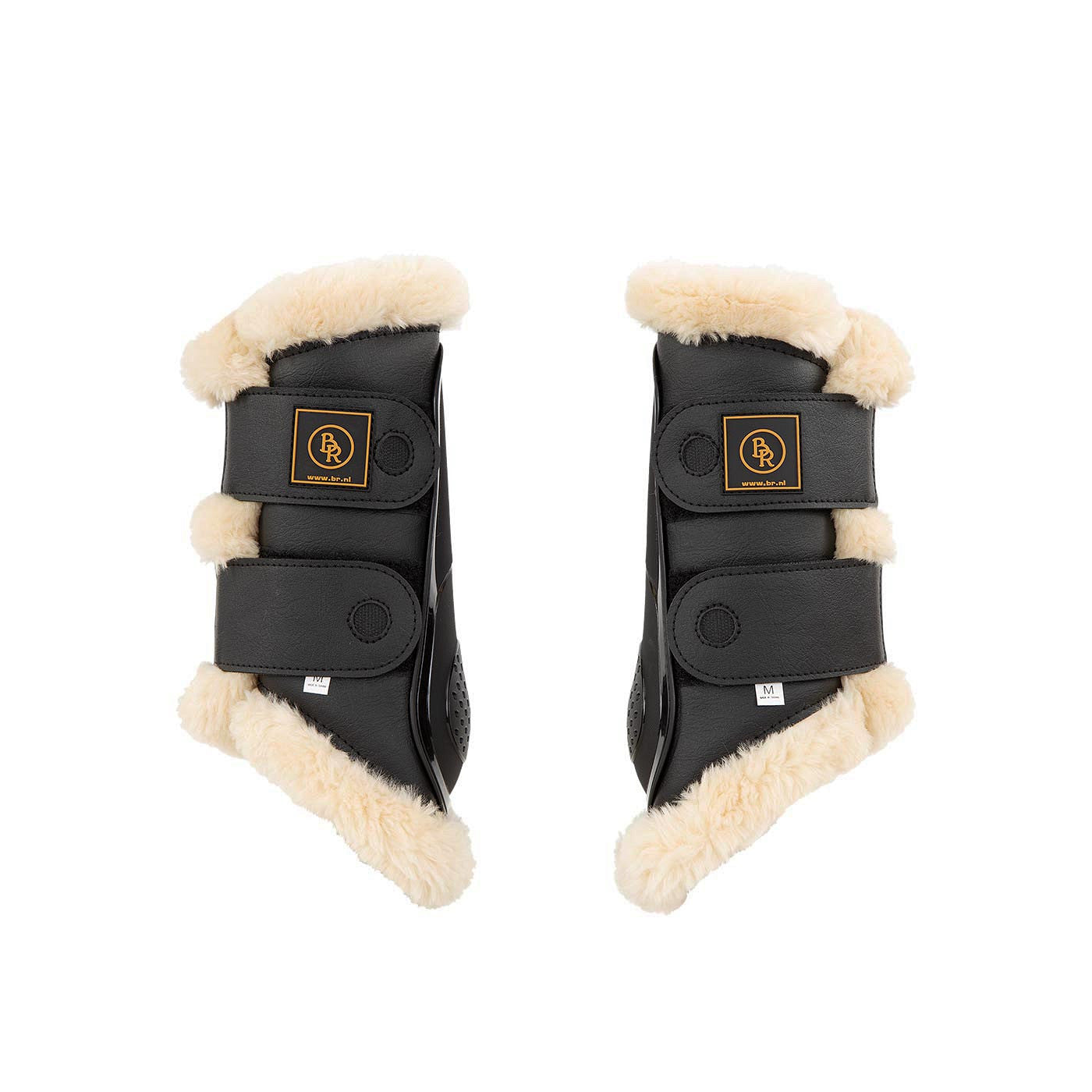 Die Außenseite der BR Gamaschen Majestic Pro bestehen aus Kunstleder und enthalten eine Außenschale aus PU mit starkem Streichschutz für zusätzlichen Schutz. Das weiche Kunstfellfutter sorgt für eine optimale Druckverteilung und ist ideal für die empfindliche Pferdehaut. Die elastische Klettverschlüsse sorgen für eine gute Passform. Auf der Oberseite der Klettverschlüsse befindet sich ein zusätzliches Stück Klettverschluss, um die Verschlüsse zu sichern, wenn Sie sie zurückschlagen.