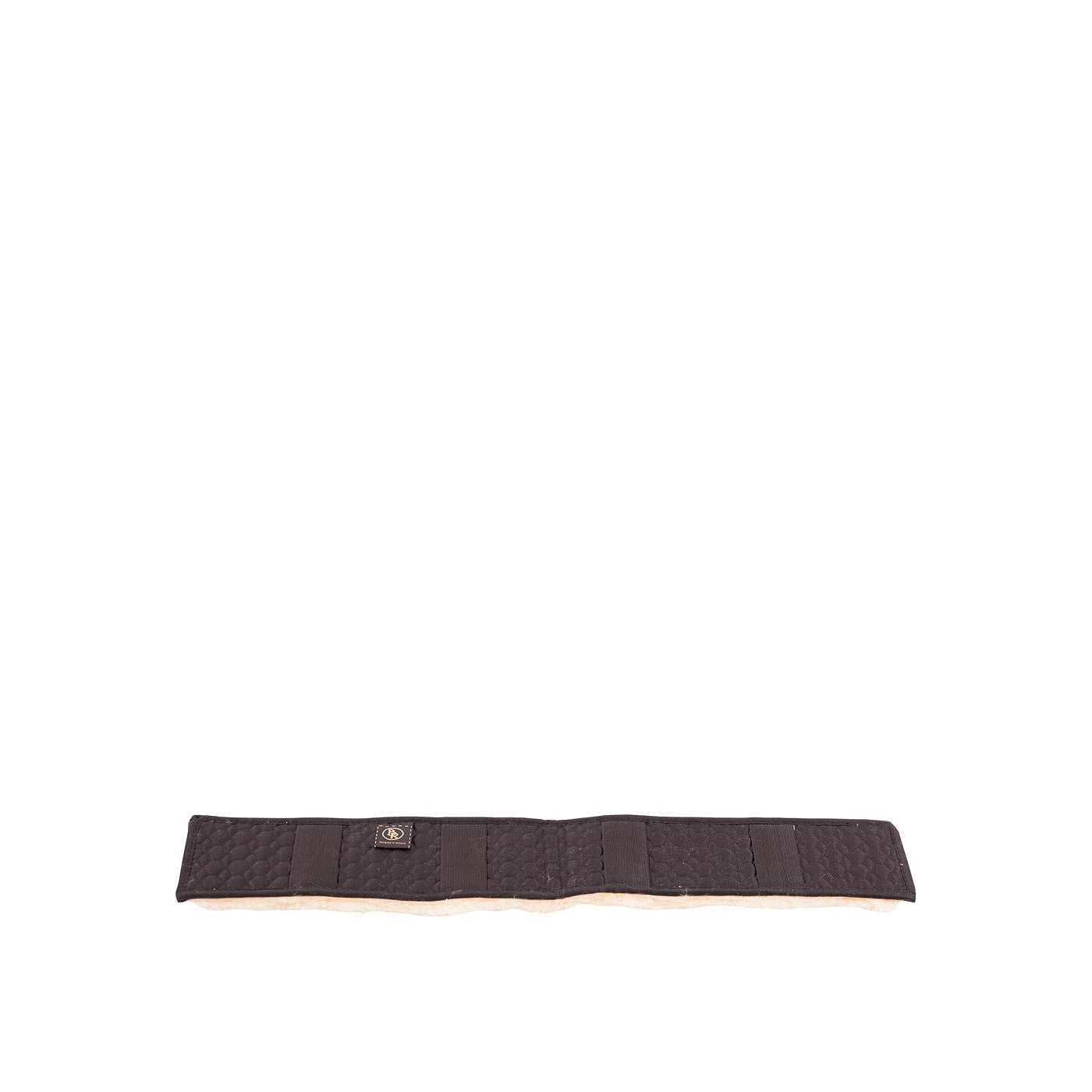 Eine Seite aus natürlichen Lammfell schützt die Haut des Pferdes, die andere Seite hat elastische Schlaufen und lässt sich so einfach am Gurt befestigen.