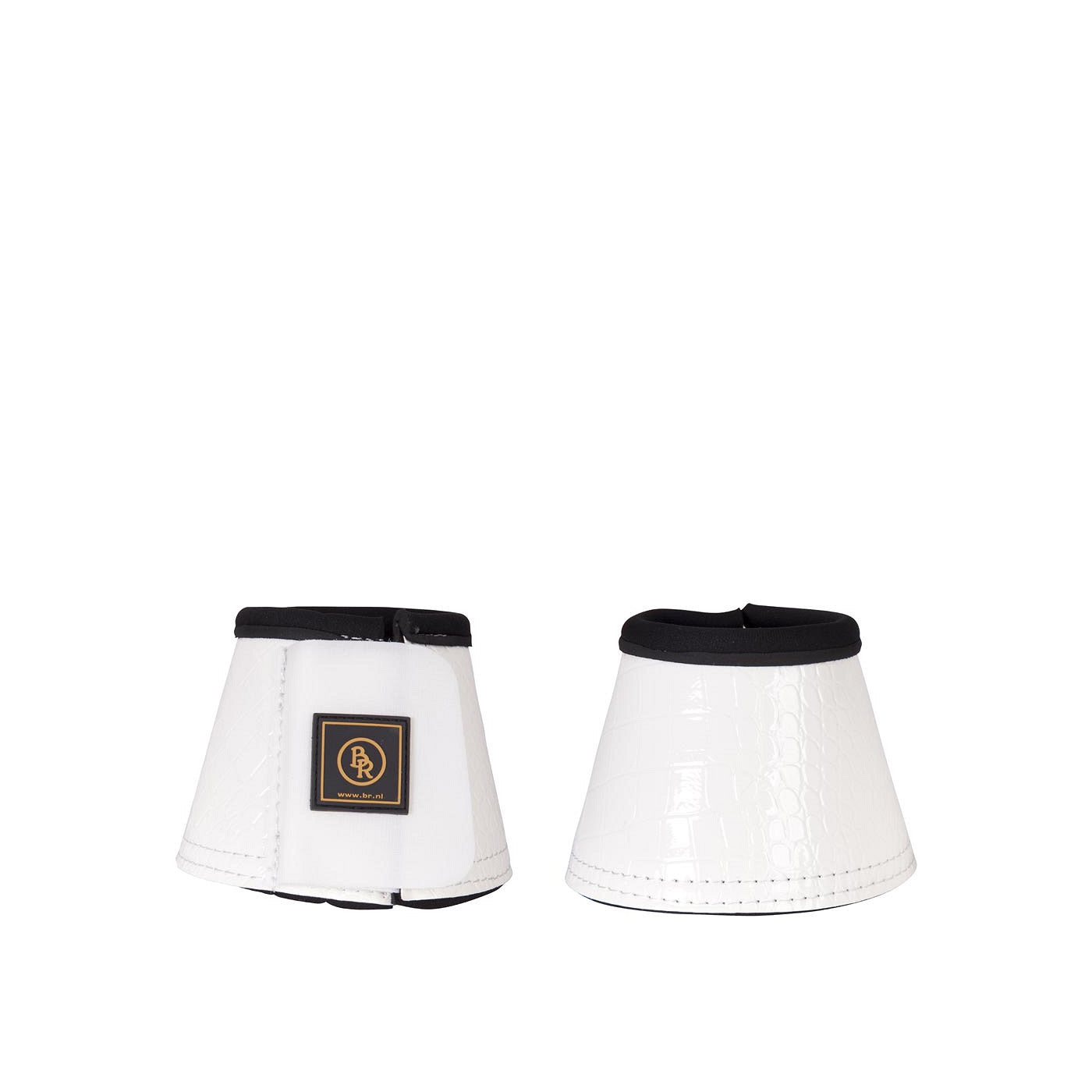 Springglocke aus synthetischem Lackleder mit Kroko-Druck. Die Springglocke hat ein 5.5 mm dickes Neoprenfutter und einen breiten, doppelten Klettverschluss. Springglocken verhindern, dass sich Ihr Pferd durch einen Ballentritt verletzt.