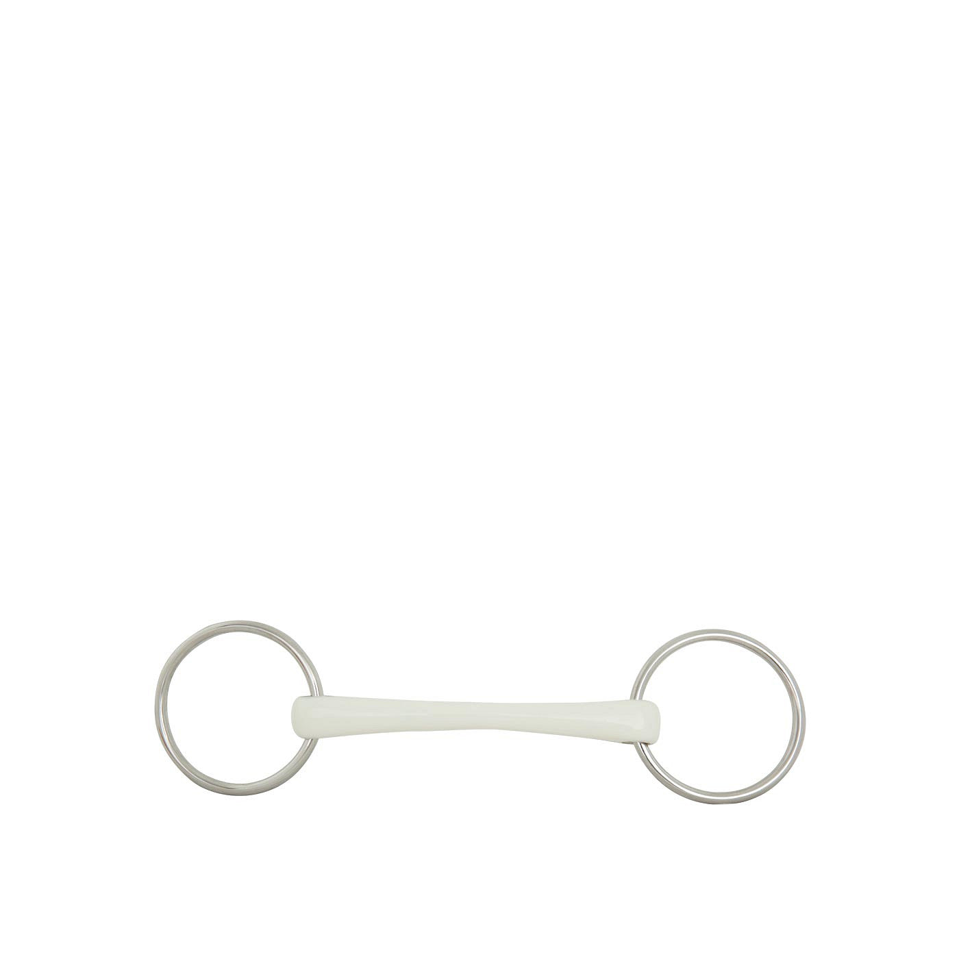 Diese ungebrochene Wassertrense ist aus hochwertigem Edelstahl in Kombination mit flexiblem Kunststoff gefertigt. Sie ist dadurch stabil und zugleich besonders weich und pferdefreundlich. Der Kunststoff hat eine Härte von 90A und ist FDA-konform. Das Material ist somit frei von Lösungsmitteln und Weichmachern und außerdem nicht giftig. Die Gebisse können für alle Pferde verwendet werden und eignen sich besonders für junge Pferde, Pferde mit empfindlichem Maul und Pferde, die andere Materialien schwer akzeptieren. Das Gebiss hat eine sehr weiche Wirkung auf das Maul, aber das ungebrochene Mundstück wirkt sensibler als eine einfach oder doppelt gebrochene Wassertrense. Das Mundstück ist 18 mm stark und die Gebissringe haben einen Durchmesser von 70 mm.