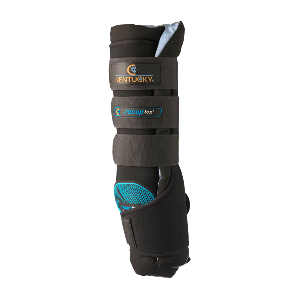Die therapeutischen magnetischen Stallgamaschen Recuptex bieten eine sichere und einfache Lösung für das Bandagieren von auf gestallten Pferden zum Schutz und zur Unterstützung ihrer Beine. Diese Gamaschen kombinieren die Gewebetechnologie des 21. Jahrhunderts mit einer anatomisch geformten Außenhülle. Sie bestehen aus atmungsaktiven Wickeln aus einem intelligenten Material namens Recuptex. Die atmungsaktive Neopren-Außenhaut ermöglicht Bewegungsfreiheit und die robusten, großzügigen Klettverschlüsse sorgen für eine sichere Passform. Dennoch sind sie schnell und einfach an und abzulegen.