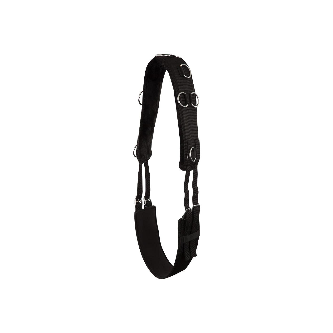 Dieser Longiergurt ist die verbesserte Version des Premiere Longiergurts (Artikelnummer 453103). Der Bauchgurt ist mit Neopren gefüttert und der obere Teil des Longiergurts ist mit weichem synthetischem Lammfell versehen. Durch die 10 D-Ringe, die über den Gurt verteilt zu finden sind, können Hilfszügel auf jede gewünschte Weise verwendet und eingestellt werden. Der Longiergurt hat silberfarbene Beschläge.