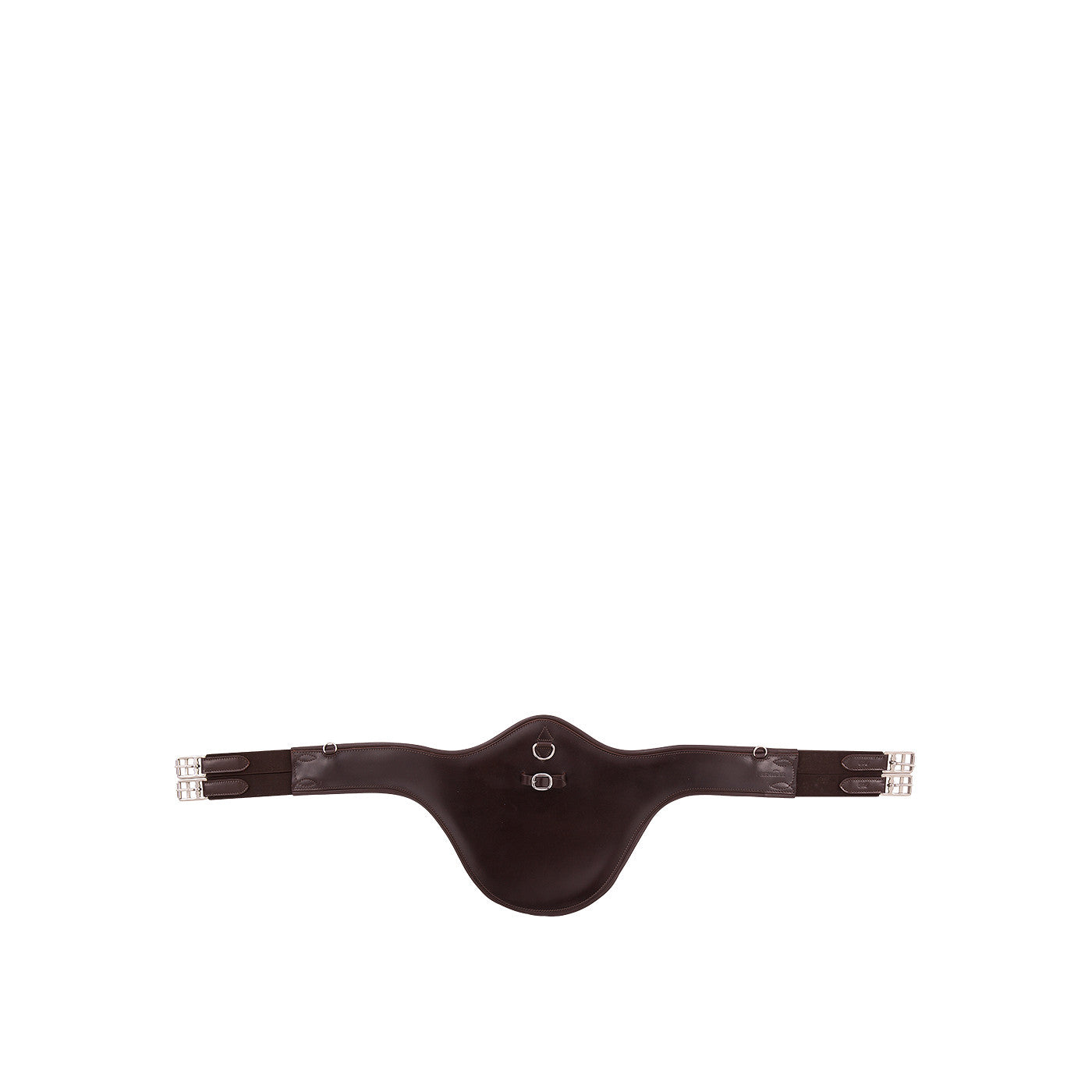 Anatomisch geformter Ledergurt mit Elastikenden an beiden Seiten und einem D-Ring und einem Riemchen für Hilfszügel in der Mitte. Der Stollenschutz ist 35 cm breit und bietet optimalen Schutz des Pferdebauches beim Springen. Die anatomische Formgebung gibt dem Pferd optimale Bewegungsfreiheit. Die Elastikenden bieten zusätzlichen Komfort und erleichtern das Nachgurten. Außerdem halten Sie den Gurt perfekt in Position. An beiden Seiten hat der Sattelgurt auch einen extra D-Ring zur eventuellen Befestigung von Hilfszügeln oder Vorderzeug. Der Gurt ist ausgestattet mit Edelstahl-Rollschnallen, was das Nachgurten erleichtert.
