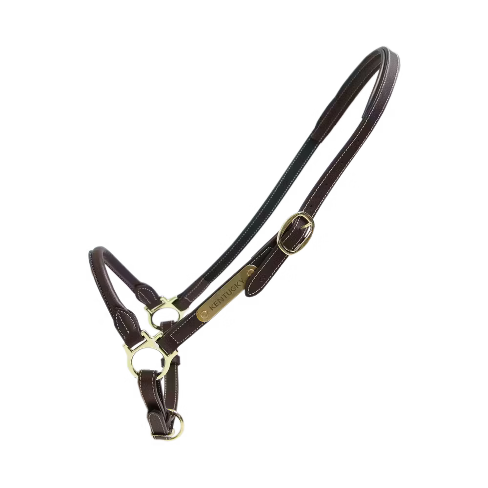 Das Leather Grooming Halter ist aus einem Lederimitat (100% tierfreundlich). Das besondere Kunstleder nimmt kein Wasser und kein Dreck auf, bricht nicht, wird nicht hart und ändert nicht die Farbe. Es ist flexibler als echtes Leder und ist deswegen einfach in der Handhabung. An der Seite ist ein goldenes Kentucky Embleme, dieses Emblame kannst du auch für eine eigene Gravur umdrehen. Auch der Verschluss ist in gold und kann somit mit unseren Führleinen super kombiniert werden.